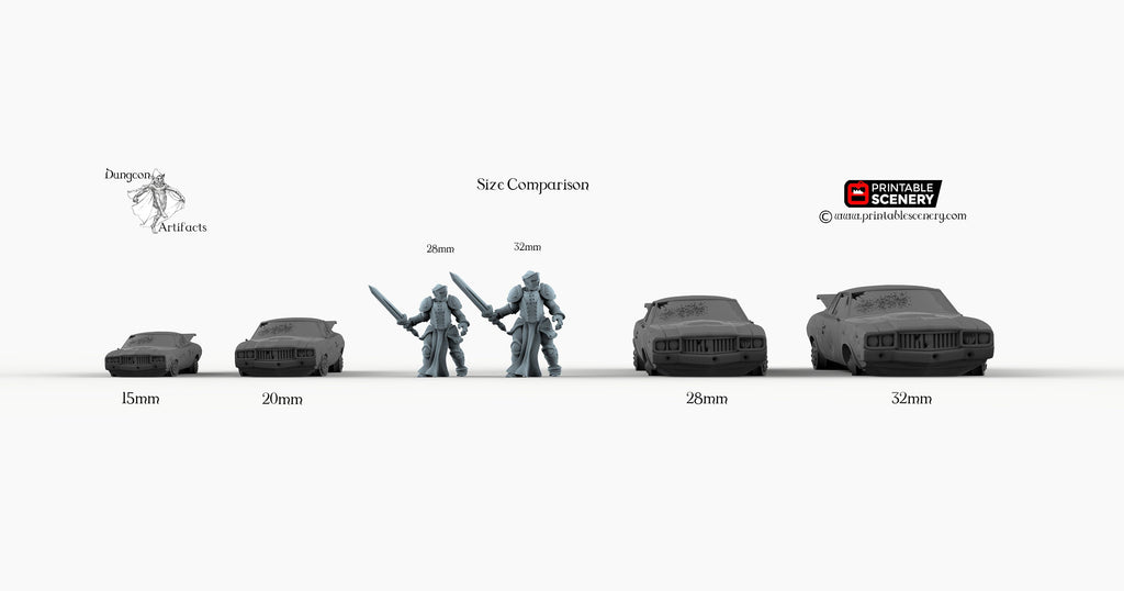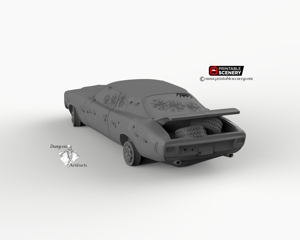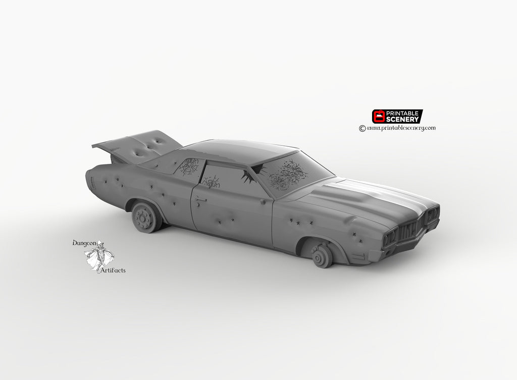 The Abandoned Chevrolet (resembles a Chevrolet Chevelle SS) is a nice piece of scatter terrain for your sci-fi or fantasy tabletop and role-playing games.