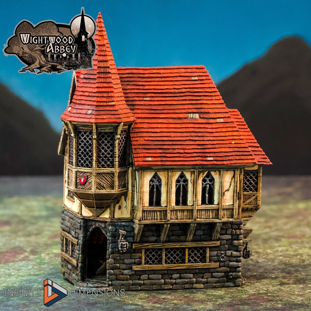 “A place to rest your weary feet after long days of pacing the courtyard contemplating the nature of divinity. Rest well (and don’t forget to say your prayers!).” This is a highly detailed medieval house for historical and fantasy tabletop roleplaying and wargaming. It has two playable levels, as well as front and rear entrances with working doors. The personal residence of Wightwood Abbey’s abbot, but entirely suitable as a dwelling in any medieval setting.