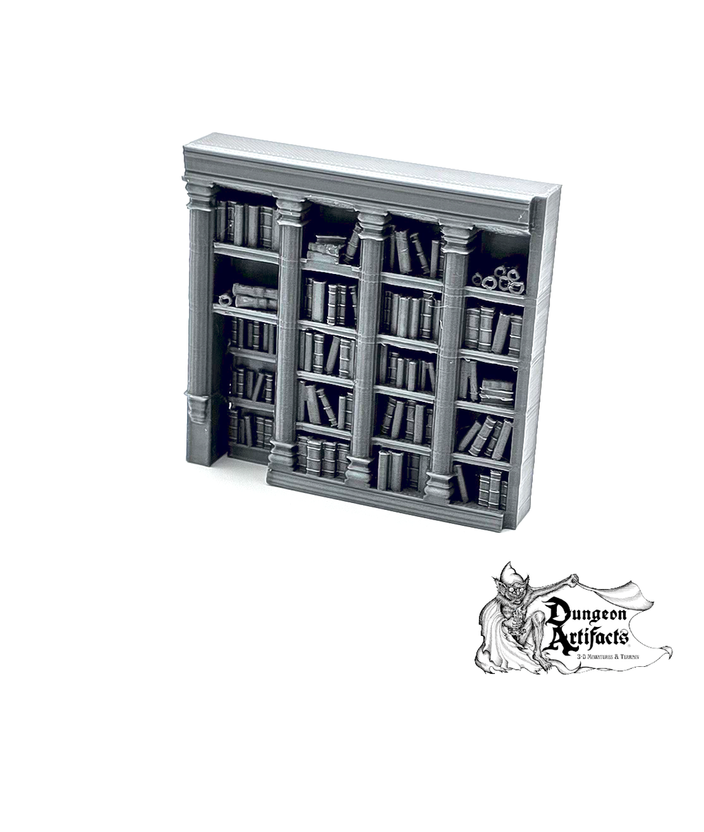 Bookshelf Secret is a great, detailed miniature for your fantasy tabletop role-playing and wargames. This piece measures approximately: 0.71" x 0.76" x 1.5" in the 10mm scale; 1.07" x 1.14" x 2.25" in 15mm; 1.43" x 1.51" x 3" in 20mm; 2" x 2.12" x 4.21" in 28mm; 2.28" x 2.42" x 4.81" in 32mm; 2.85" x 3.03" x 6.01" in 40mm; and 3.85" x 4.08" x 8.11" in 54mm.
