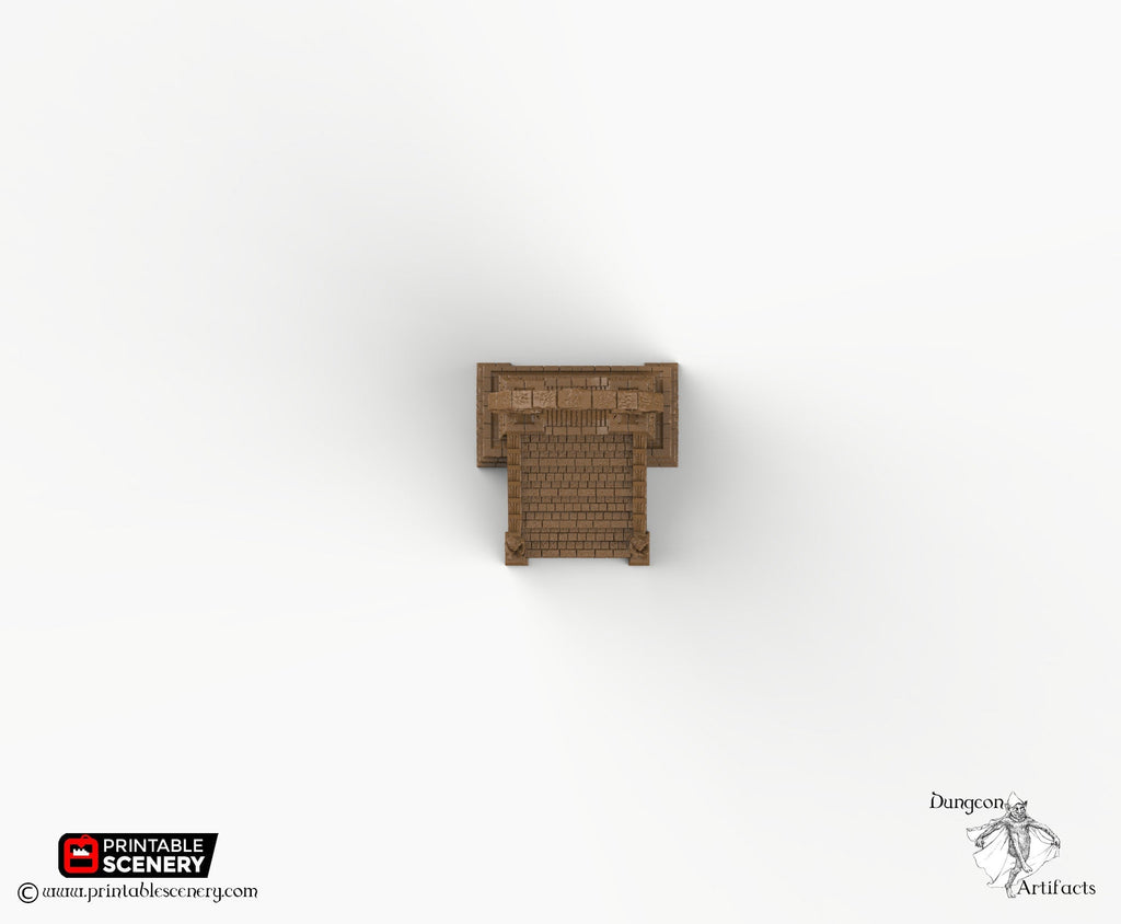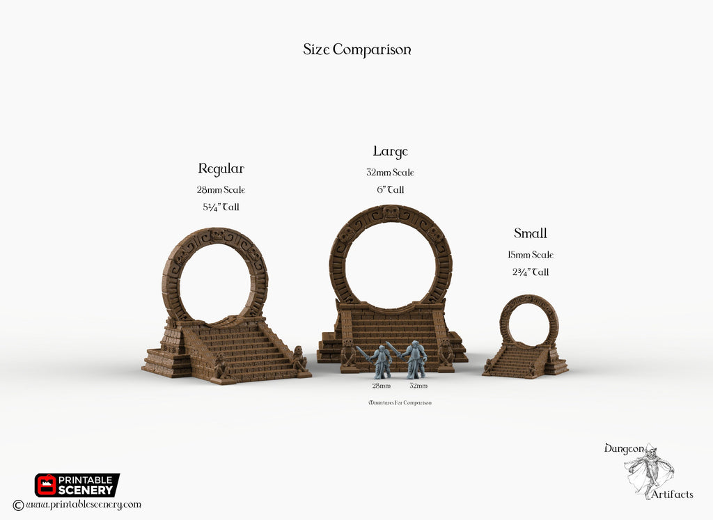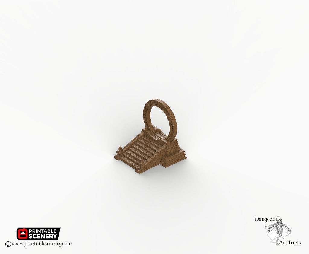 “After the squad stepped through the ring, they turned around, and saw the camp and the lander had vanished—it was definitely a portal, just like they all thought. Schmexas muttered, ‘It's like new. We must've gone back in time a hundred years!’ Sergeant Drake Flintlock corrected him, ‘No, look at the landscape. We're in the same time, but it's a different place.’ Dorkins opened his mouth to say something pedantic about space-time relativity, when suddenly, a volley of stone age arrows came at them out of the jungle.” The Cosmic Gate is a building designed for use in tabletop or role-playing games with a fantasy or historical setting