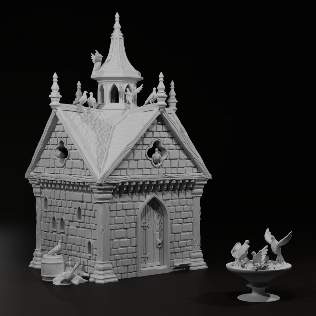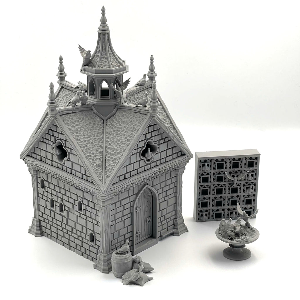 Dovecote is a great detailed terrain piece for your tabletop fantasy role-playing and historical wargames. The complete set measures approximately: 2.58" x 2.58" x 4.4" in 15mm; 3.44" x 3.44" x 5.86" in 20mm; 4.82" x 4.82" x 8.2" in 28mm; 5.5" x 5.5" x 9.37" in 32mm; and 6.88" x 6.88" x 11.71" in 40mm.