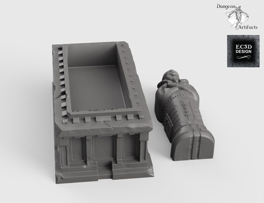 The Egyptian Sarcophagus is a nice piece for your fantasy and historical tabletop role-playing and wargames. It measures approximately: 0.59" x 1.21" x 0.4" in 15mm; 0.79" x 1.61" x 0.54" in 20mm; 1.1" x 2.25" x 0.75" in 28mm; 1.26" x 2.57" x 0.86" in 32mm; 1.57" x 3.21" x 1.07" in 40mm; and 2.12" x 4.34" x 1.45" in 54mm.