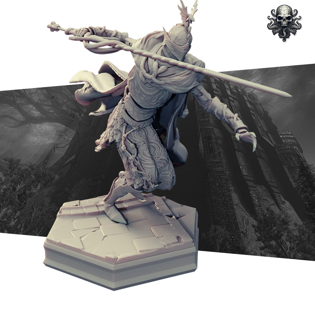 This item comes unpainted in 4 pieces. The piece is printed at an ultra-high .02mm layer height in your choice of standard tough resin or premium semi-flex. Premium has massively increased durability for table play.