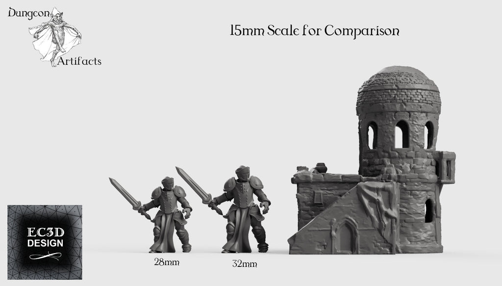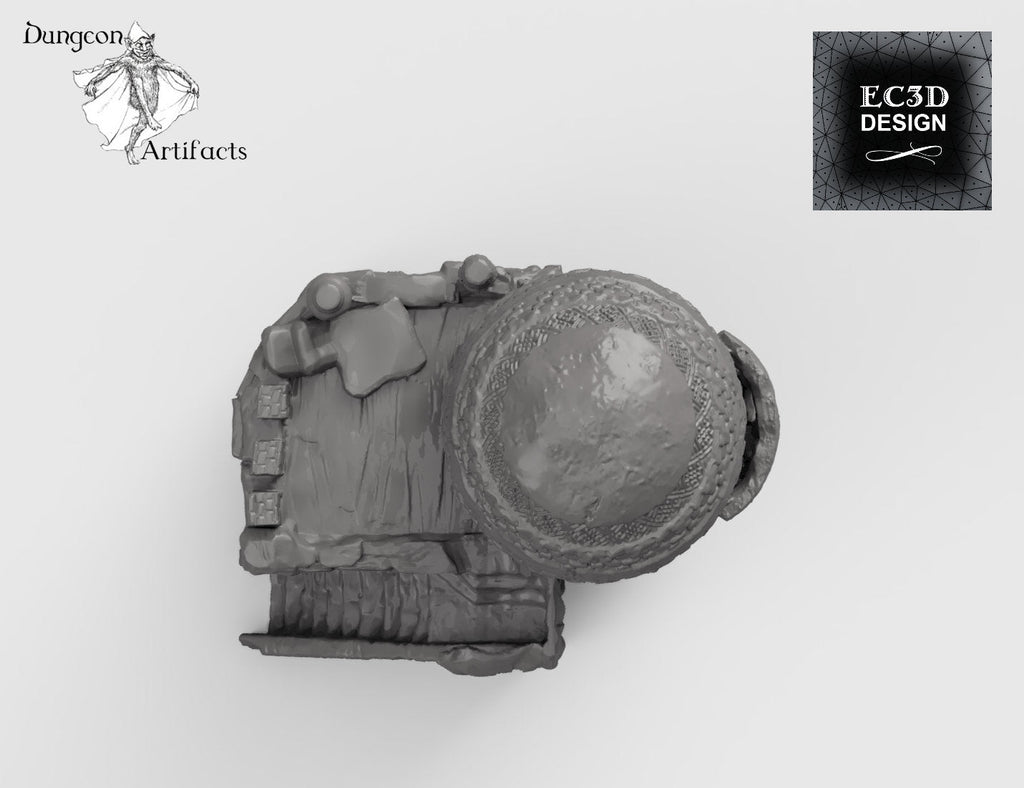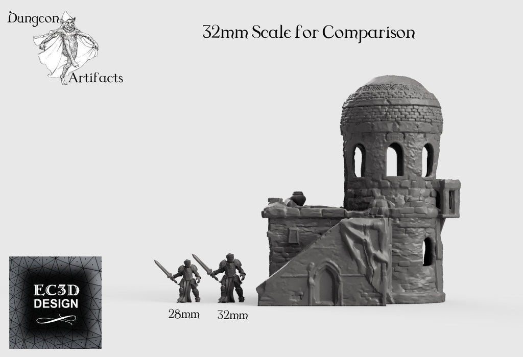 The item comes unpainted in 3 pieces. Miniatures are not included and are pictured for scale only. All items are printed in non-toxic PLA filament. For standard the item is printed at a high 0.15mm resolution, and with an ultra-high 0.1mm resolution used for premium. Color may vary. As with all 3D prints, some finishing may be required.