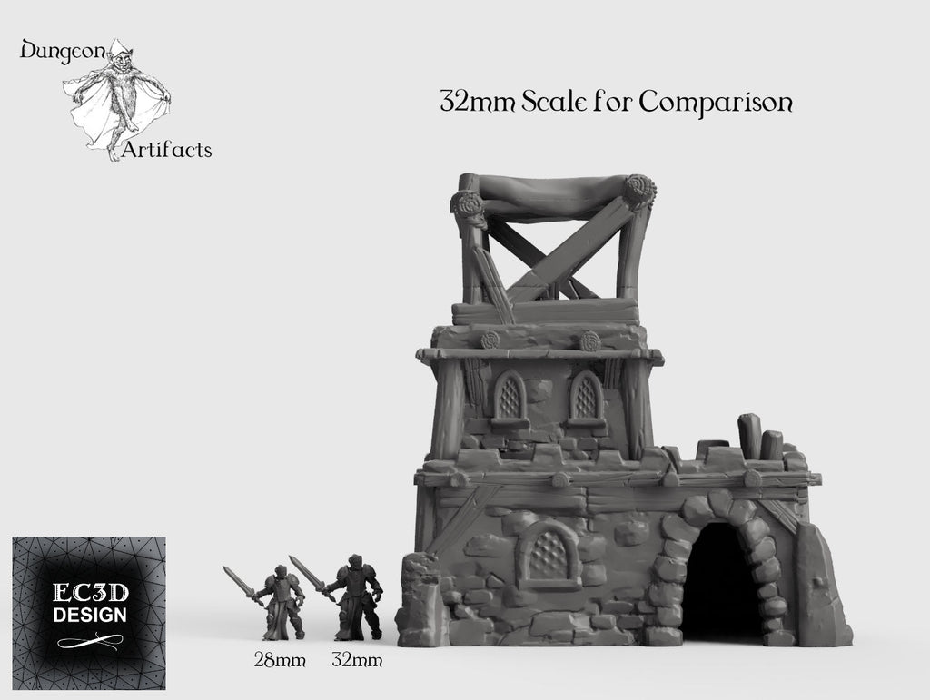 The item comes unpainted in 5 pieces. Miniatures are not included and are pictured for scale only. All items are printed in non-toxic PLA filament. For standard the item is printed at a high 0.15mm resolution, and with an ultra-high 0.1mm resolution used for premium. Color may vary. As with all 3D prints, some finishing may be required.