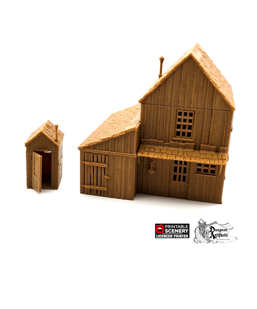 The Miner's Shack is a unique building for your western historical or fantasy tabletop and role-playing games. It comes with two floors and a shed.