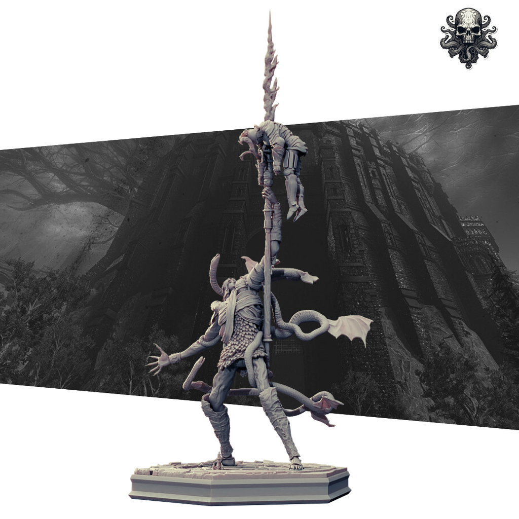 The Ophidian Messmar is a great addition for your tabletop fantasy role-playing and historical wargames. The main body section (without spear) measures approximately: 2.61" x 1.14" x 2.15" in 32mm; 3.26" x 1.43" x 2.69" in 40mm; 4.4" x 1.93" x 3.62" in 54mm.