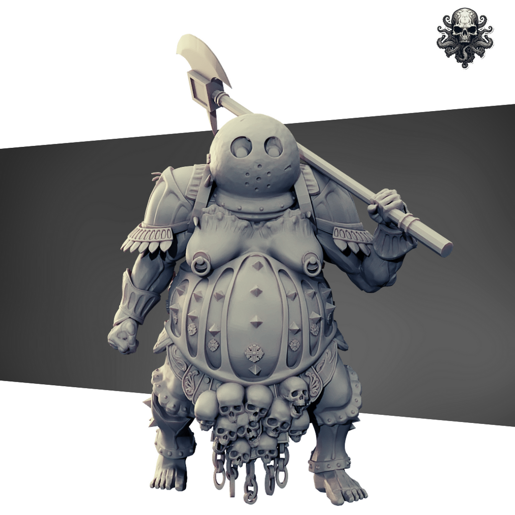 The main body piece measures approximately: 1.55" x 1.11" x 2.02" in 32mm; 1.94" x 1.39" x 2.53" in 40mm; 2.62" x 1.87" x 3.41" in 54mm. This item comes unpainted in 3 pieces. The piece is printed at an ultra-high .02mm layer height in your choice of standard tough resin or premium semi-flex. Premium has massively increased durability for table play.